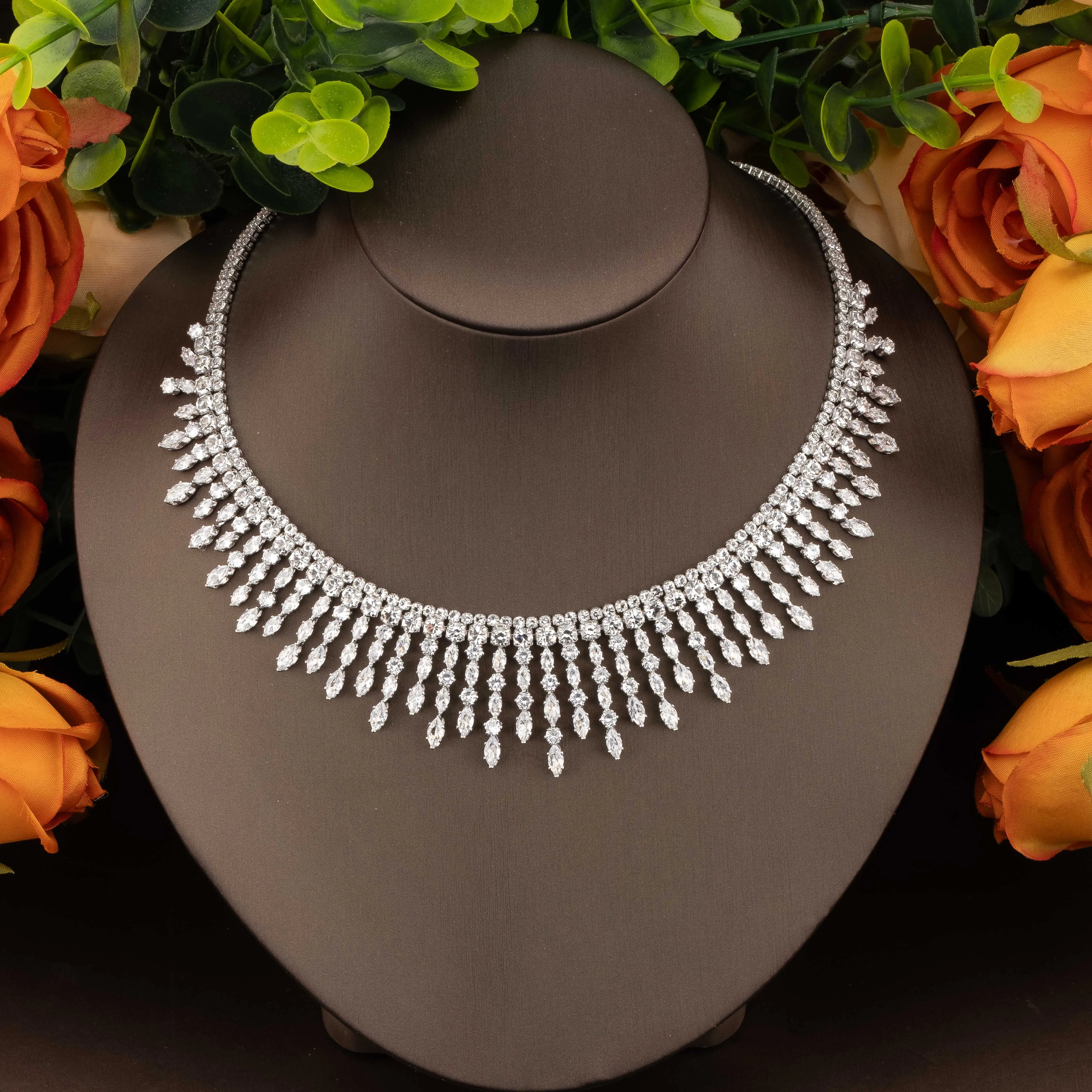 1 Set of High-Quality, Luxurious and Elegant Jewelry Set with Sparkling Cubic Zirconia in a Bouquet Design, Suitable for Women to Wear at Parties and Banquets. Gift Box Not Included